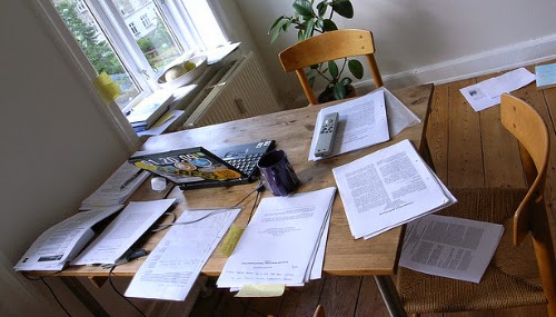 | juggling 35 papers and articles while writing my lit. review (Photo by Soren Mork Petersen | www.flickr.com/photos/stilleben) |
